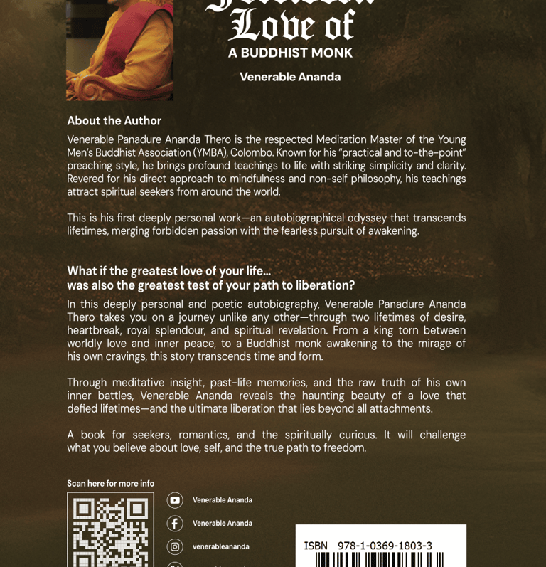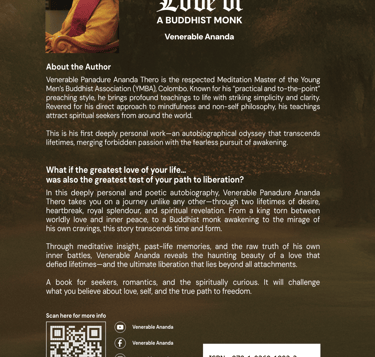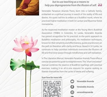 "I am deeply grateful for the profound teachings of Venerable Ananda. He is truly the best meditation master I have ever met. His approach is straightforward, with teachings that are both to the point and delivered in a manner that is short and sweet, making them easy to understand and apply. His wisdom has guided me through moments of stress and uncertainty, bringing immense peace and clarity. I highly recommend his teachings to anyone seeking true spiritual growth and inner peace."